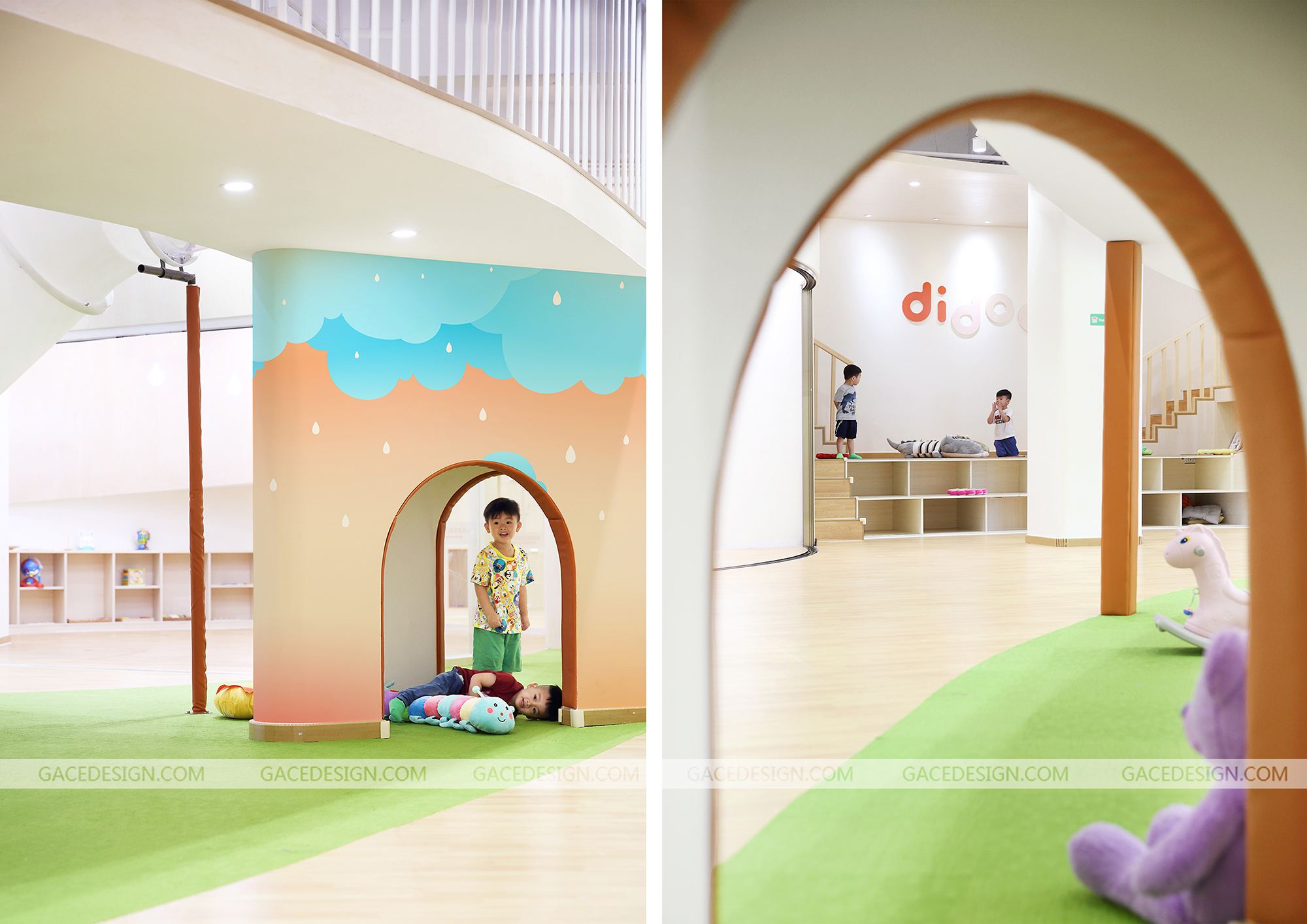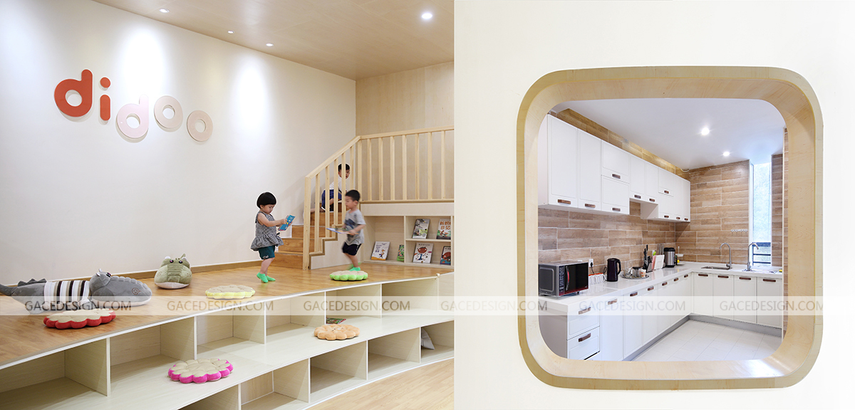 迪多國際全日制早托中心,為新時代父母提供安全,科學(xué),全面的幼兒全日制托管服務(wù),致力于培養(yǎng)2-6歲兒童優(yōu)秀的行為習(xí)慣、獨立人格及社交能力。作為全日制日托中心,是兒童的另一個家,這是一個謀求大尺度變化的空間設(shè)計,規(guī)避程式化的隔班教學(xué),將自然元素引入,打造全新的敘事空間。營造簡潔自由的空間,干凈的木色地板和青翠的草甸鋪陳開來,Didoo的橙色點綴其中,自然系配色去嘈雜化令空間更親和。