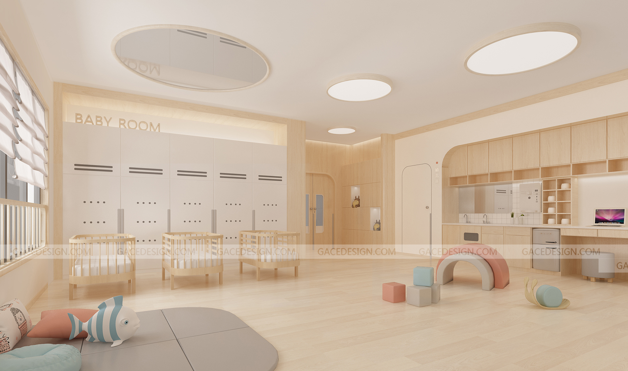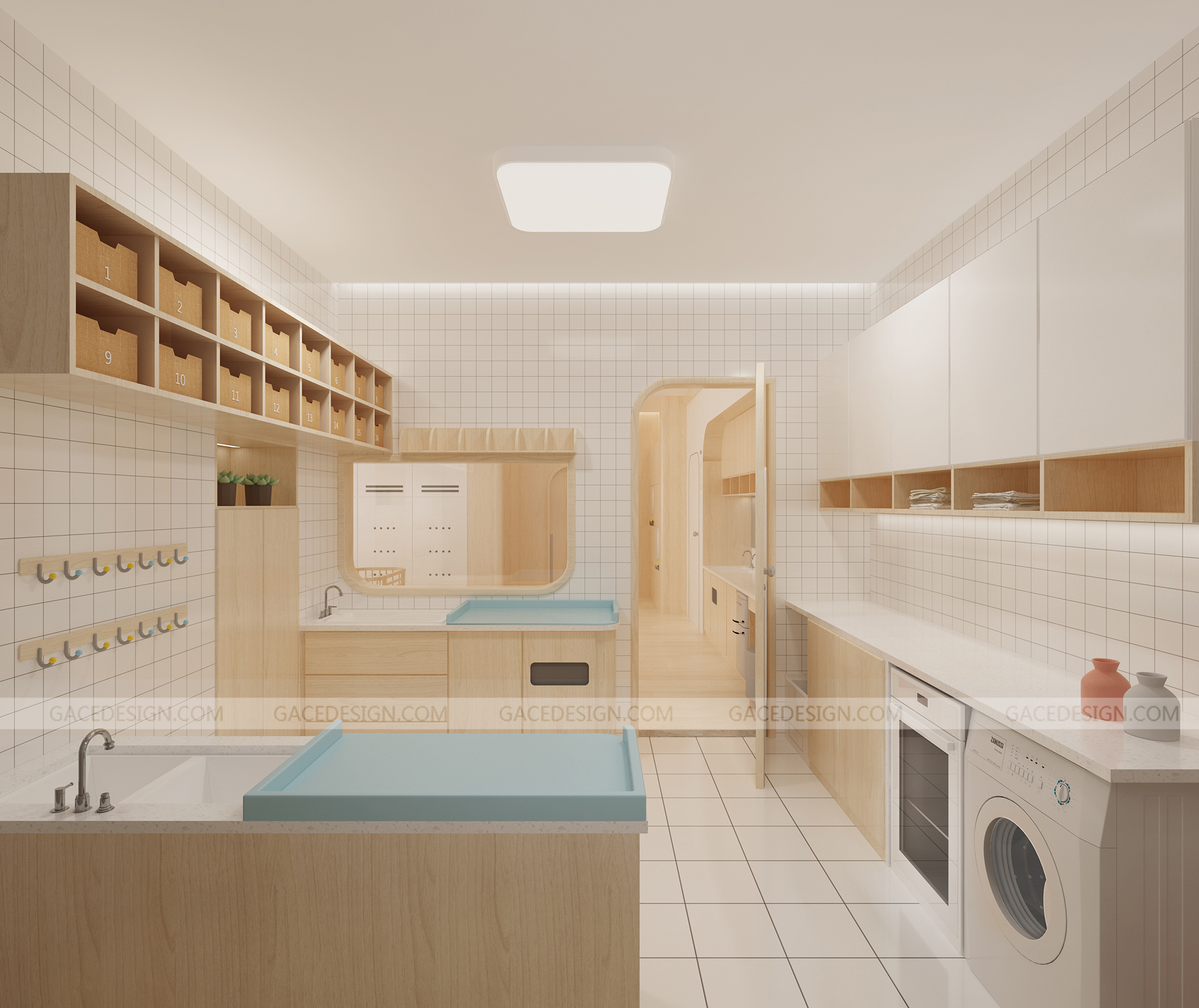 設計概括:這是我們幫啟思頓托育園設計的旗艦店,面積達到1000平以上,作為中山市高標準的示范性托育園,我們在設計之前組織設計師進行跟崗觀察,學習守護型嬰幼兒保育等系列保育書。考慮到保育員在操作層面上的便捷性,我們進行了場景模擬,把操作層面所涉及的柜體以及路徑進行了系統性整理。考慮到嬰幼兒在保育園的心理狀態以及發展心理學和空間敏感,我們定位這個項目是孩子的第二個家。是一家值得爸爸媽媽愿意托付的托育園。