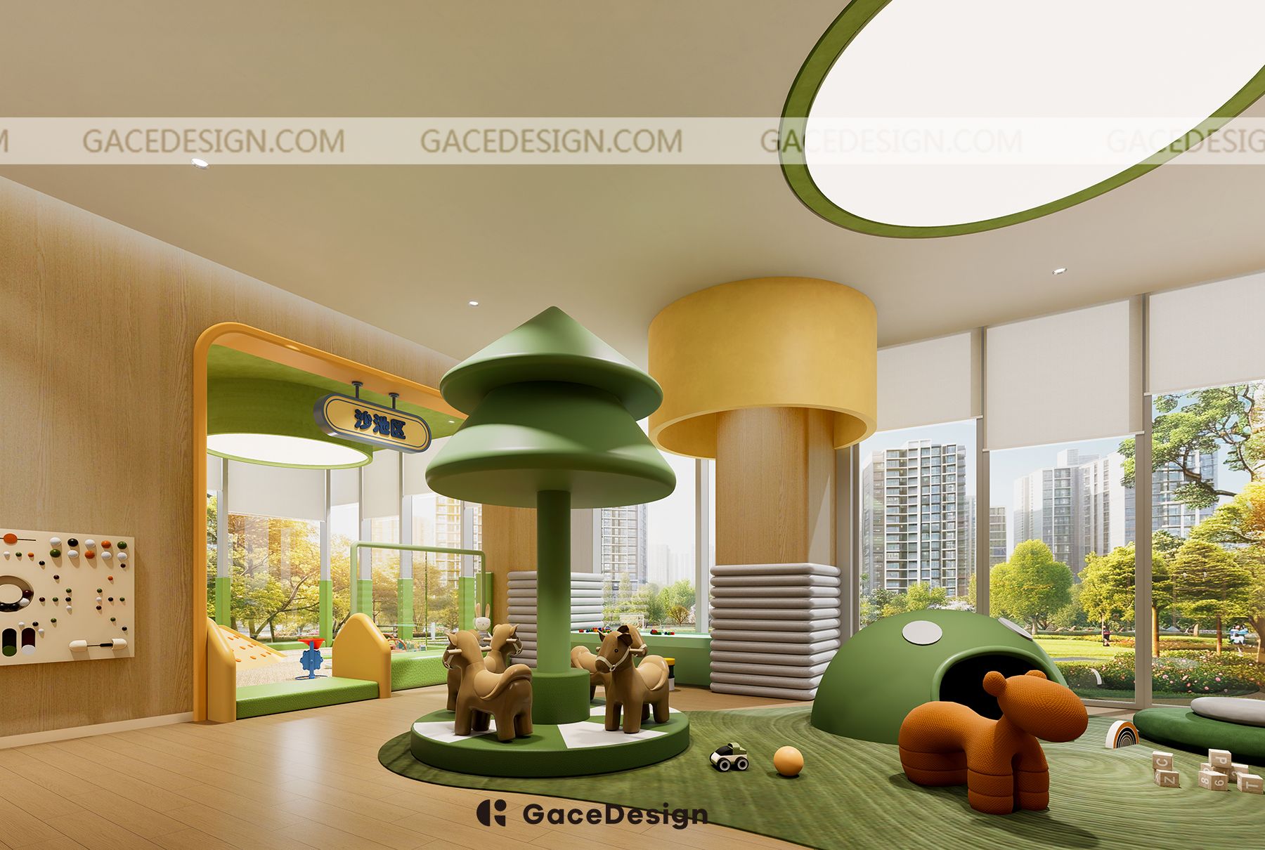 ?該項目整體屬性是小型的兒童樂園/兒童會所,為了社區配套對內使用的。為了滿足孩子們的不同需求,我們特別劃分了兩個主要區域——靜態區域和動態區域。
