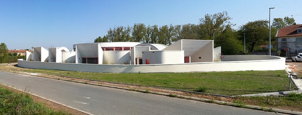 一座位于巴黎利耶于桑的幼兒園,設(shè)計(jì)師設(shè)計(jì)了大地色的陶瓷磚陶瓷磚的重疊像鵝卵石一樣覆蓋在獨(dú)特的坡屋頂建......