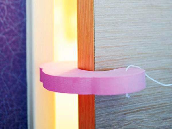 小孩經常出現被門夾到的意外,因此門板上裝了防夾裝置,透過海綿緩沖,門不會一下就大力關上。