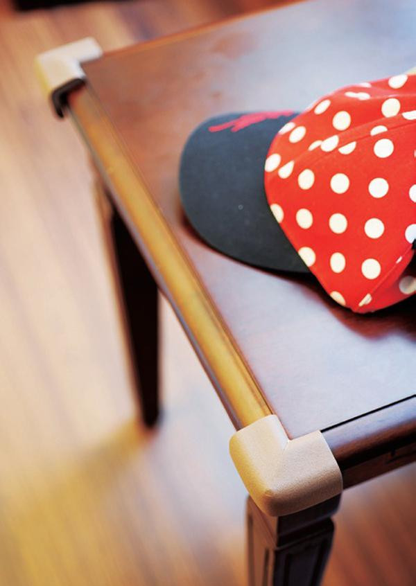 為避免小孩在玩耍中碰撞桌子受傷,游戲間的桌子四角都裝設防碰撞裝置,小孩可以安心地玩。客廳沙發特別選用軟質填充,加上馬鞍皮革,看似堅硬的外表,其實非常柔軟,可以避免小孩在客廳跑來跑去碰撞的危險。