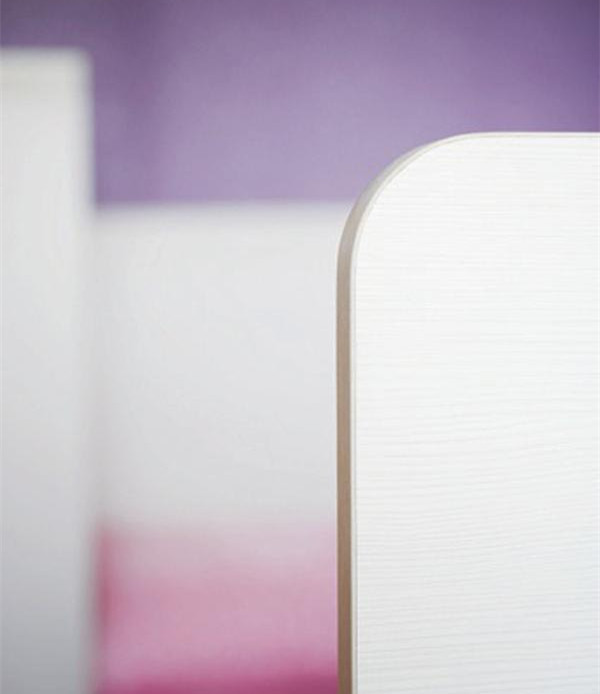 空間規劃要站在孩子身高來考量,才可避免孩子撞到柜子、或造成孩子使用上不方便。柜子尖角一定要避免,可使用倒圓或倒斜角設計,讓孩子可以盡情活動游戲。客廳茶幾四周做圓角處理,避免小孩去刺到或割到,而小孩房的床板四周也都做了圓角設計,非常貼心的細節規劃。