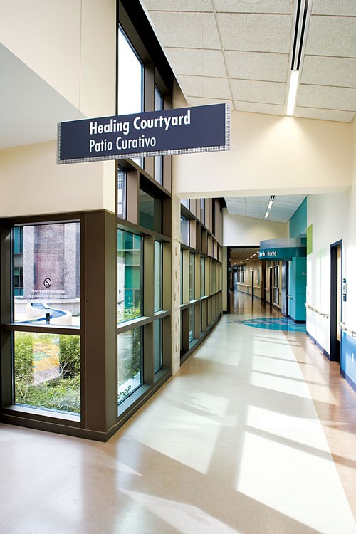 奧斯汀市因致力于推進(jìn)綠色建筑的實(shí)踐活動(dòng)而聞名于世,這家融合了德州中部社區(qū)活動(dòng)文化的醫(yī)院作為700英畝新城發(fā)展項(xiàng)目的一部分,位于奧斯汀市前機(jī)場(chǎng) 所在地,占地473,000平房英尺,擁有169個(gè)床位,整體設(shè)計(jì)具有獨(dú)特的視覺美感,并在很大程度上降低了建筑對(duì)周圍環(huán)境的消極影響。該醫(yī)學(xué)中心包括一 個(gè)天然氣發(fā)電廠,一個(gè)自然光照空氣新鮮的庭院,天然景觀和各種環(huán)境友好型裝飾物,所有這些都為德州中部地區(qū)營(yíng)造了一個(gè)優(yōu)秀的康復(fù)治療中心。中心總裁兼首席 執(zhí)行官Robert I. Bonar在接受采訪時(shí)表示,中心一貫放眼于創(chuàng)建一座世界級(jí)的醫(yī)療機(jī)構(gòu),成為第一家得到LEED認(rèn)證的醫(yī)院正是其中的一部分。取得LEED認(rèn)證的動(dòng)力并不 單單是環(huán)保,因?yàn)橐患揖G色醫(yī)院對(duì)于病患的康復(fù)更具有深遠(yuǎn)的影響。