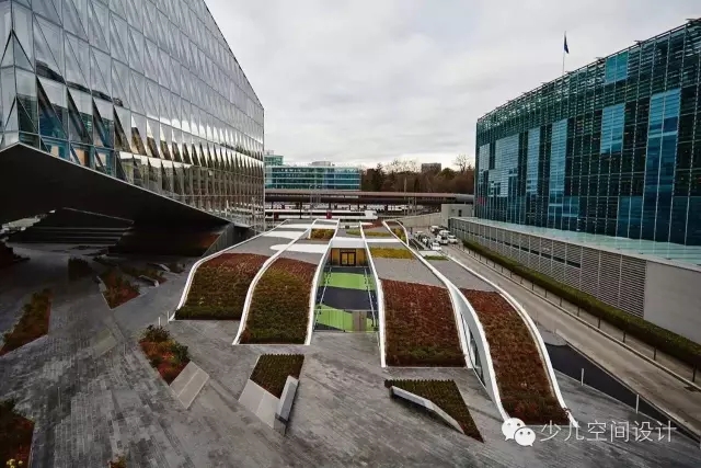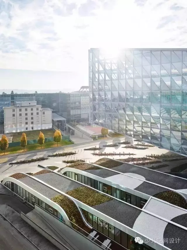 這片兒童區域與日本國際煙草公司日內瓦分部相連。位于日本國際煙草公司與世界氣象組織這兩個大體量構筑物之間的幼兒園,被定位為具有功能的景觀建筑。