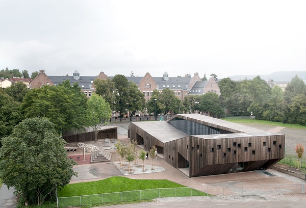 挪威的一個小城市公園的附近有一個幼兒園,它有的戶外空間有個花園一樣的場地可以供孩子們去盡情的游戲玩耍,而且戶外沒有什么明顯的建筑棱角和危險的物品所以孩子們的安全問題可以得到保證,這就是與附近建筑有所不同的挪威法格堡格幼兒園。