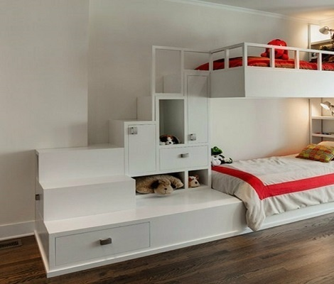 1、子母床都會(huì)配有儲(chǔ)物空間,可以增加而兒童房的儲(chǔ)物空間,保持房間的統(tǒng)一性與整潔性