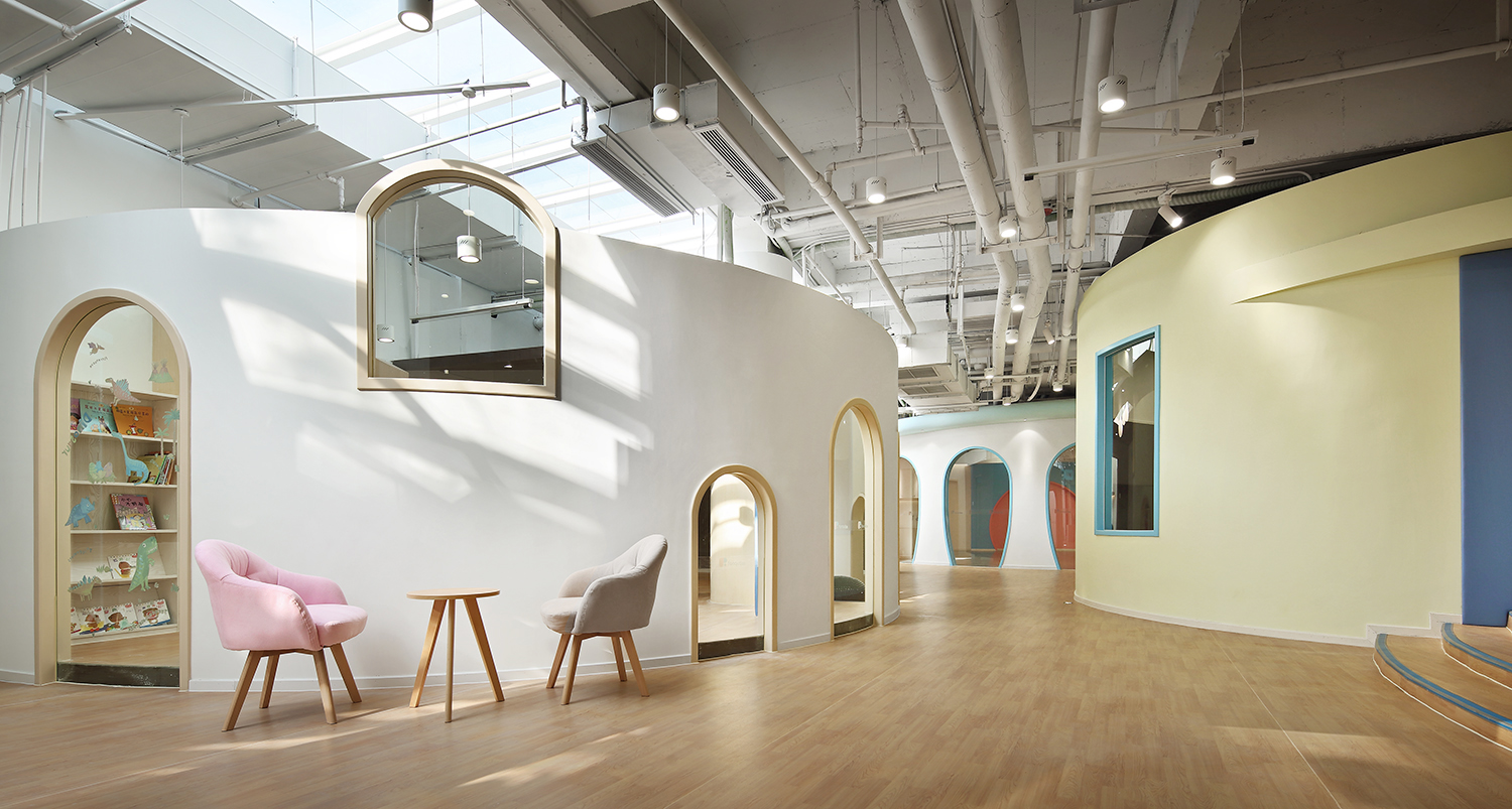 進入兒童成長中心內部,一幢幢可愛的圓形房子矗立眼前,開闊的走道四通八達,讓人豁然開朗。