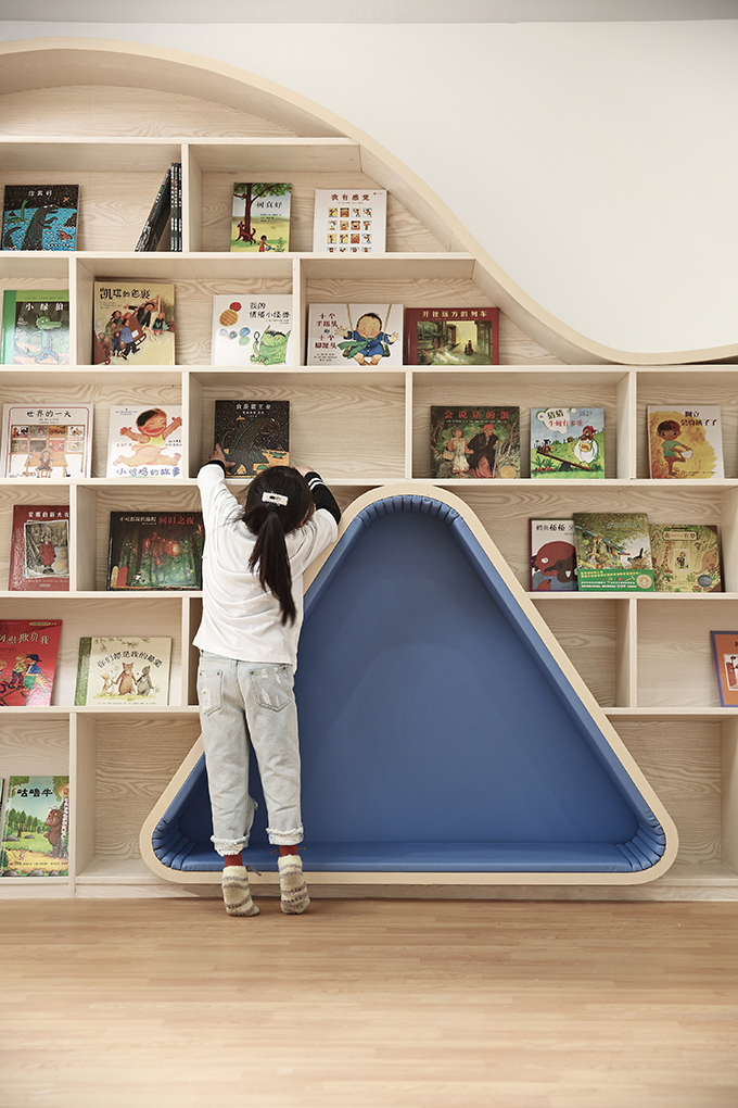 設計師將室內采光最充足的區域留給餐廳、繪本區等公共區域,同時打造開放感,以此盡量延展陽光在成長中心的照射范圍。當陽光進來,仿佛天燈將整座城市點亮。孩子們能夠在陽光下活動,吃飯、讀書、玩樂,隨著時間的變化觀察光影,感受陰晴雨雪和四季變化。